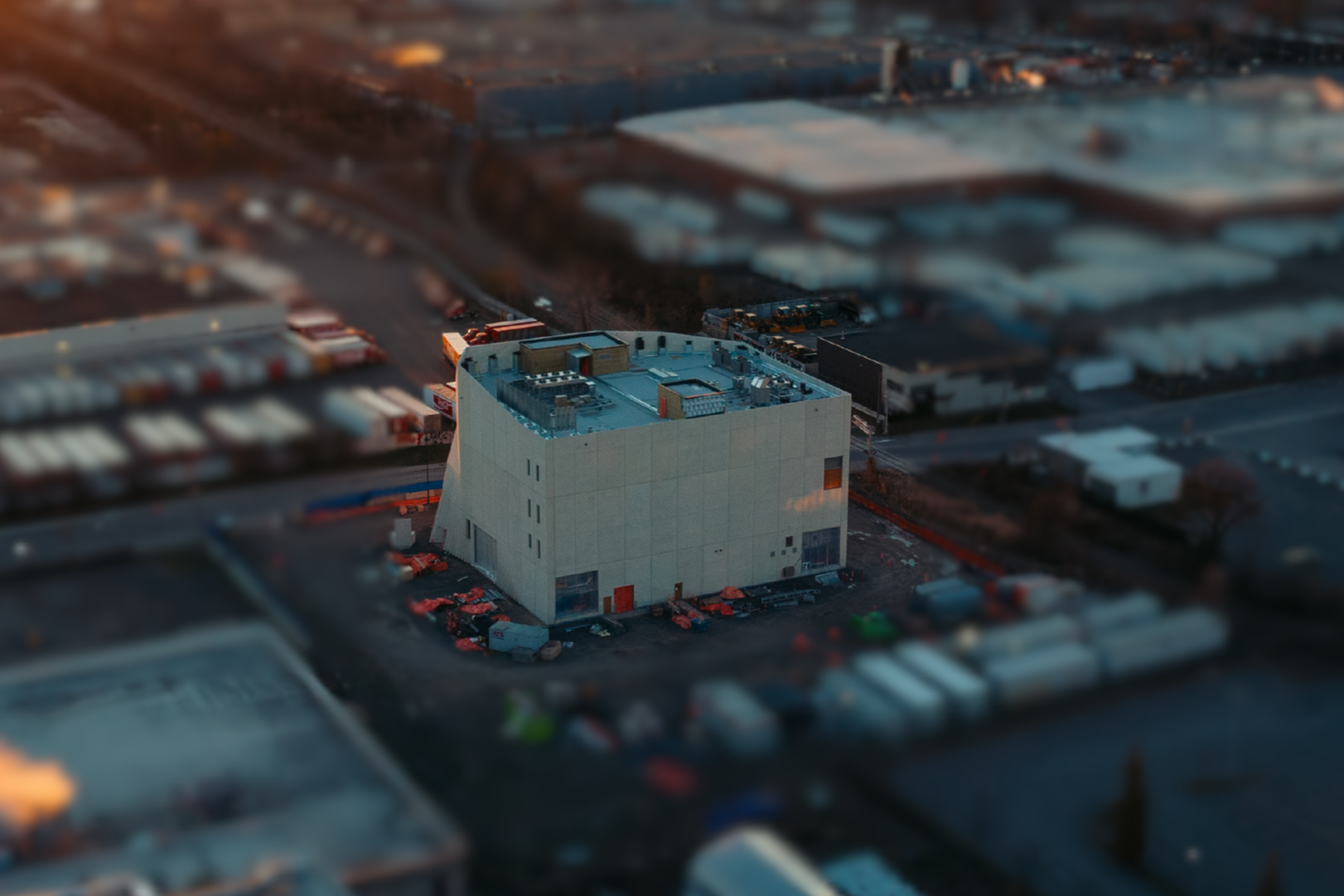 This 5,000 m², 5-storey building houses the STM’s administrative staff. Its architecture, inspired by the "cowcatcher" of steam locomotives, pays tribute to the site's railway history while blending harmoniously into the Olympic District. The work included soil decontamination, installation of Berlin walls, and the installation of water, electricity, and security networks. The complex exposed concrete structure is complemented by a precast concrete external envelope, designed to ensure a 50-year watertight seal. Particular attention was paid to insulation and thermal resistance of the envelope. The project also includes mobile equipment such as elevators and an overhead crane, as well as fire protection systems, secure oil storage, backup generators, as well as complete plumbing, electrical, access control, and HVAC networks.