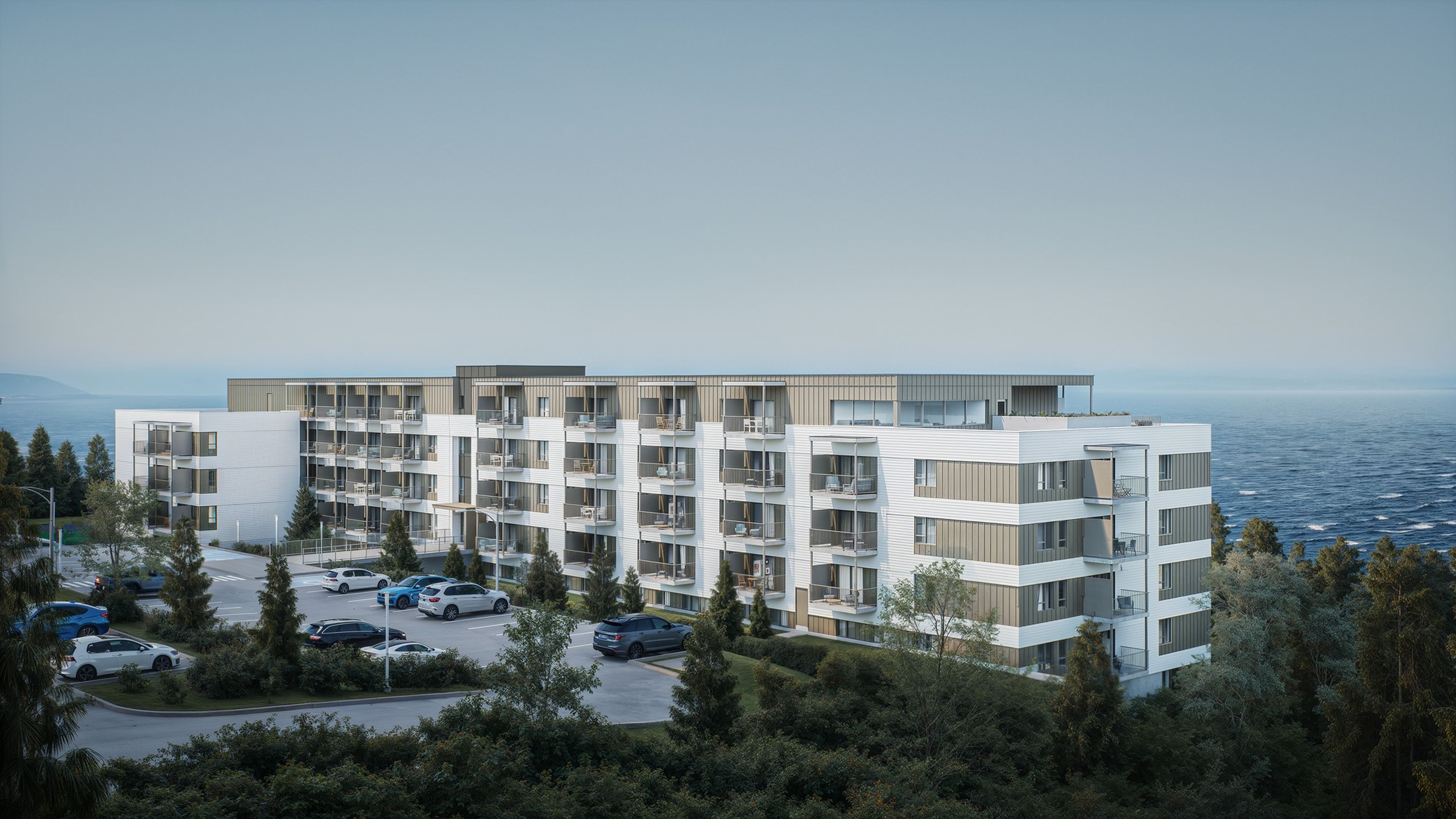 Situé sur un cap rocheux, le bâtiment comprendra un rez-de-jardin et se distinguera par sa structure mixte en béton et en bois. Il s’agit également d’un projet immobilier novateur intégrant des murs coupe-feu en bois CLT (bois lamellé-croisé), une première au Québec.