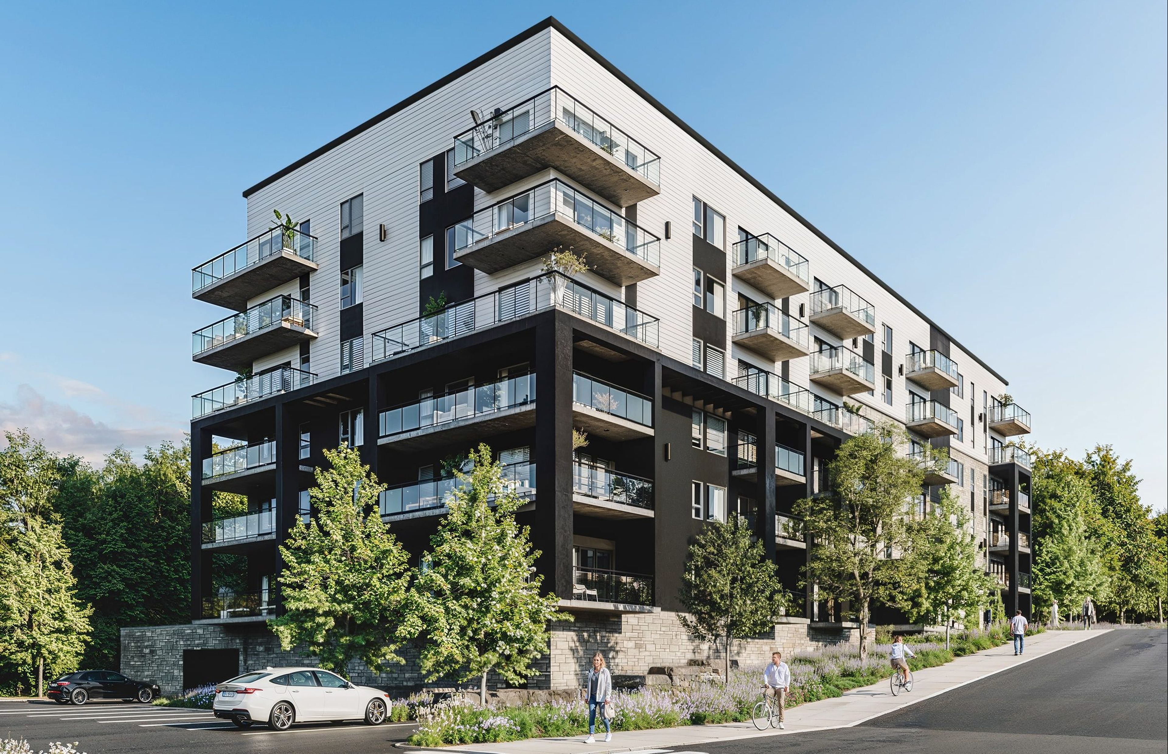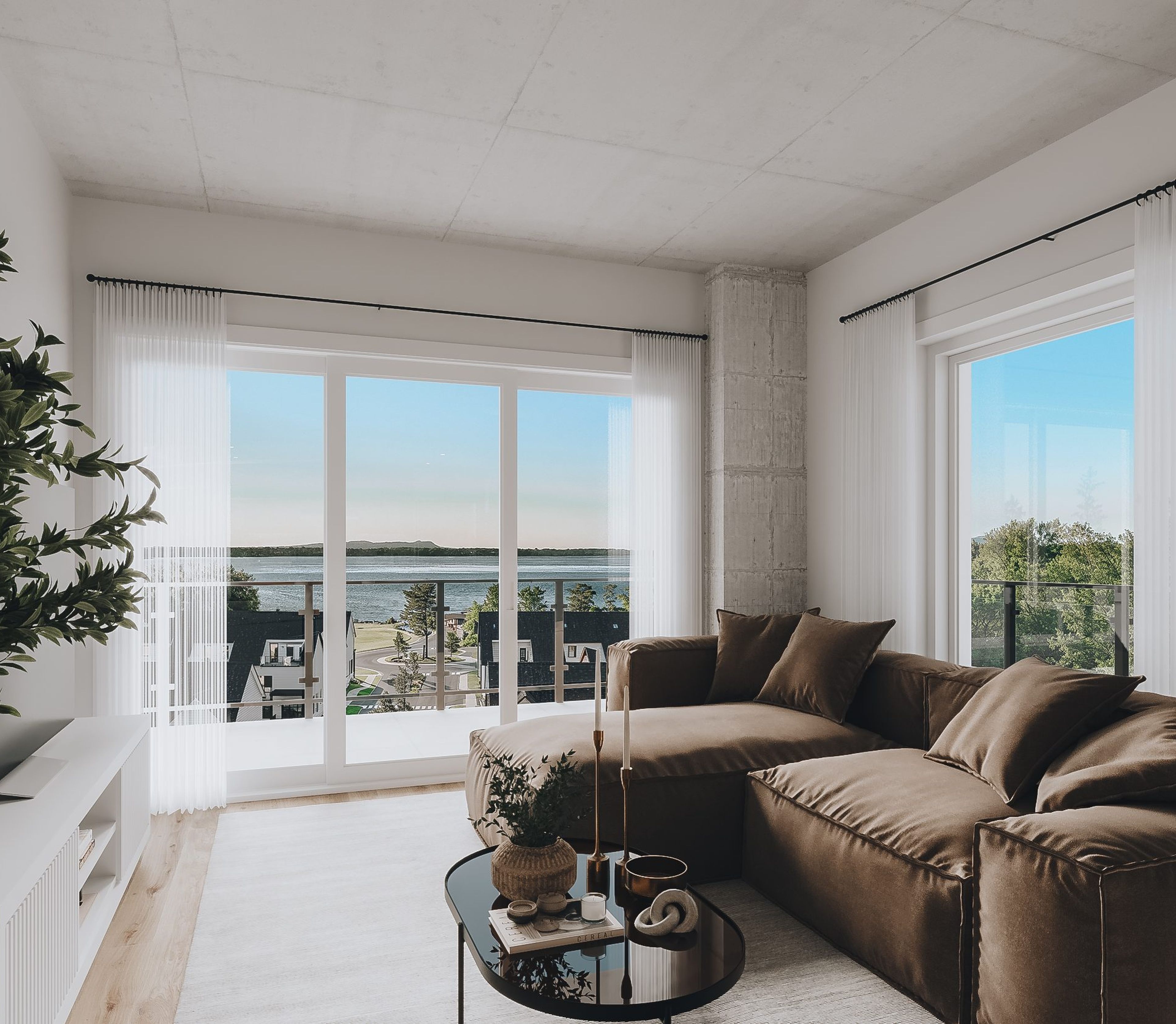 Le Riva Ouest offre à ses occupants une vue imprenable et un environnement paisible, en plus d’une salle commune au rez-de-chaussée pensée pour favoriser les échanges et la convivialité.
