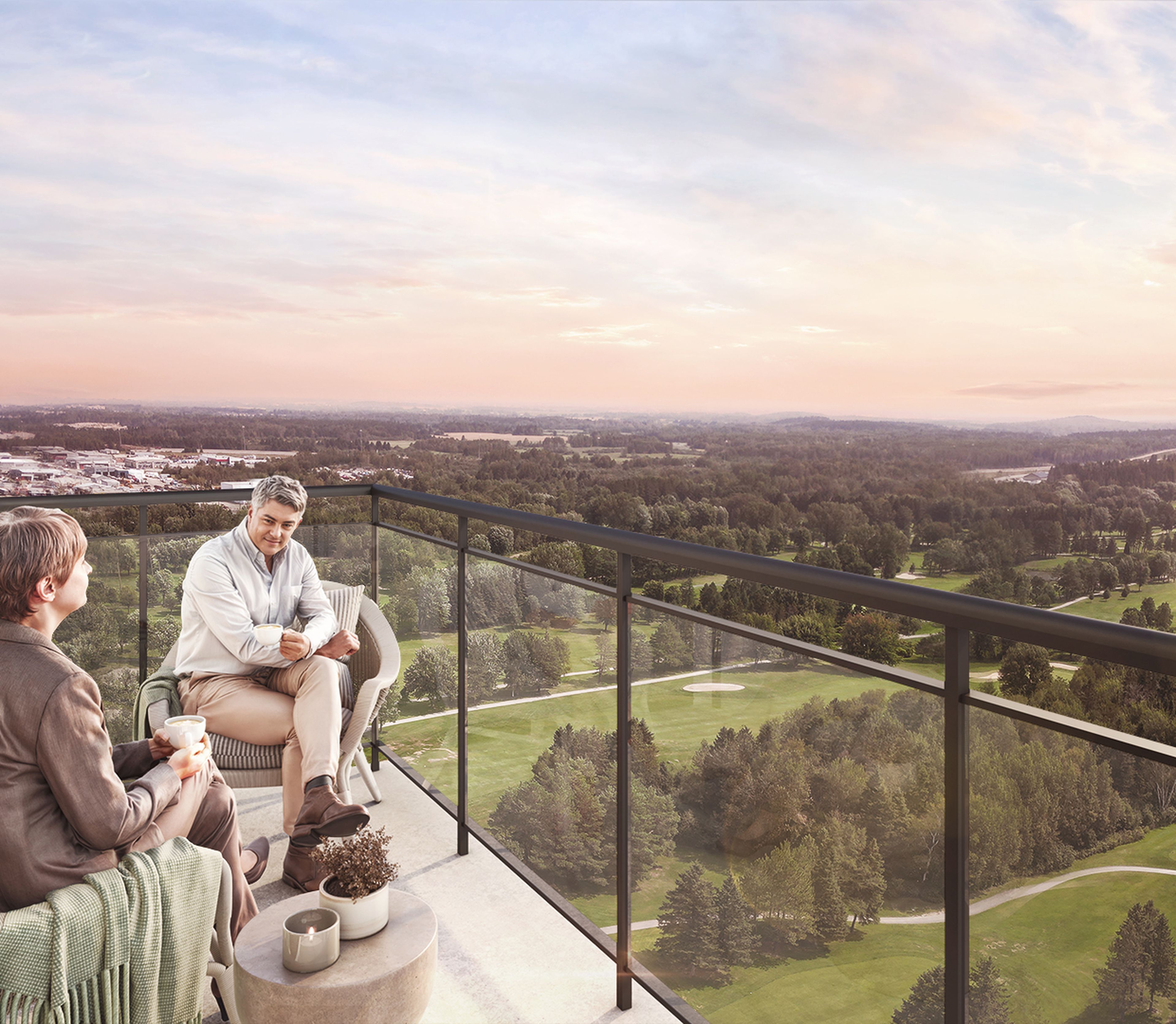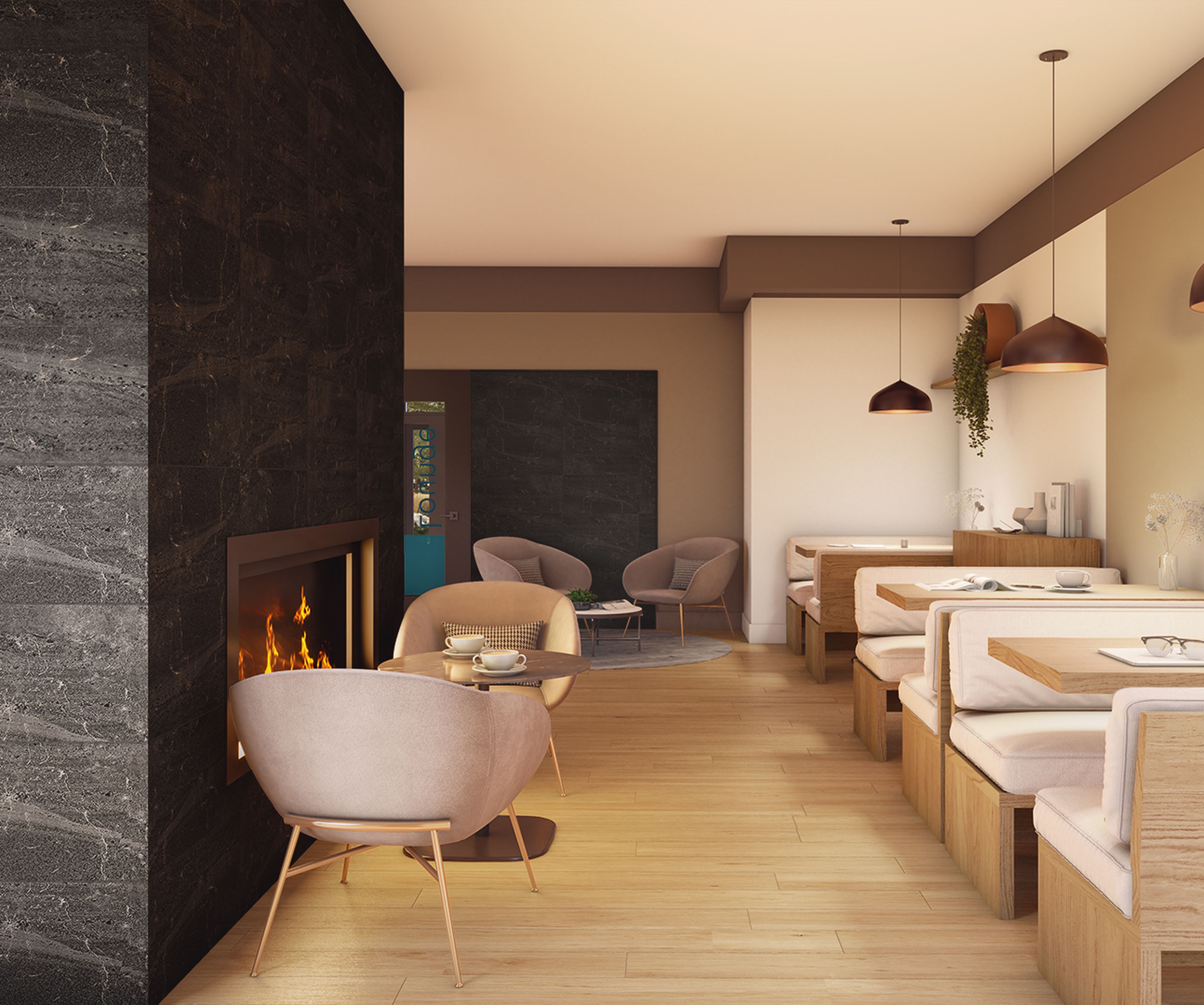 Des aires communes sont disponibles au rez-de-chaussée, comme un chalet urbain, une salle de réception privée, un gym et une salle de yoga, ainsi qu’à l’extérieur avec une terrasse aménagée.